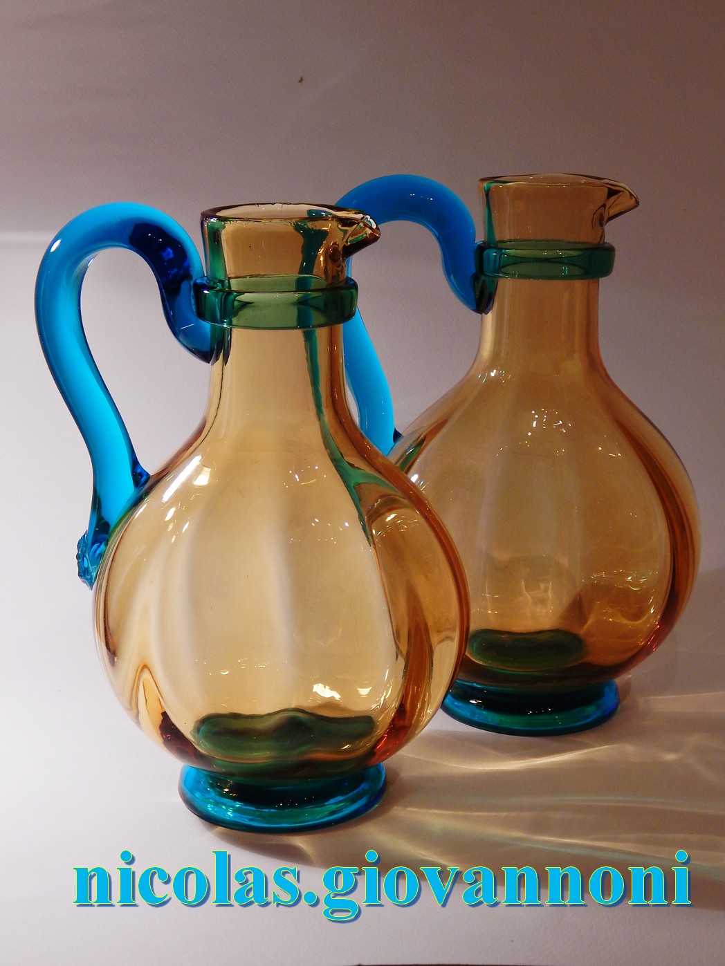 Portieux - George Sand - Paire de pichets anse bleue | |