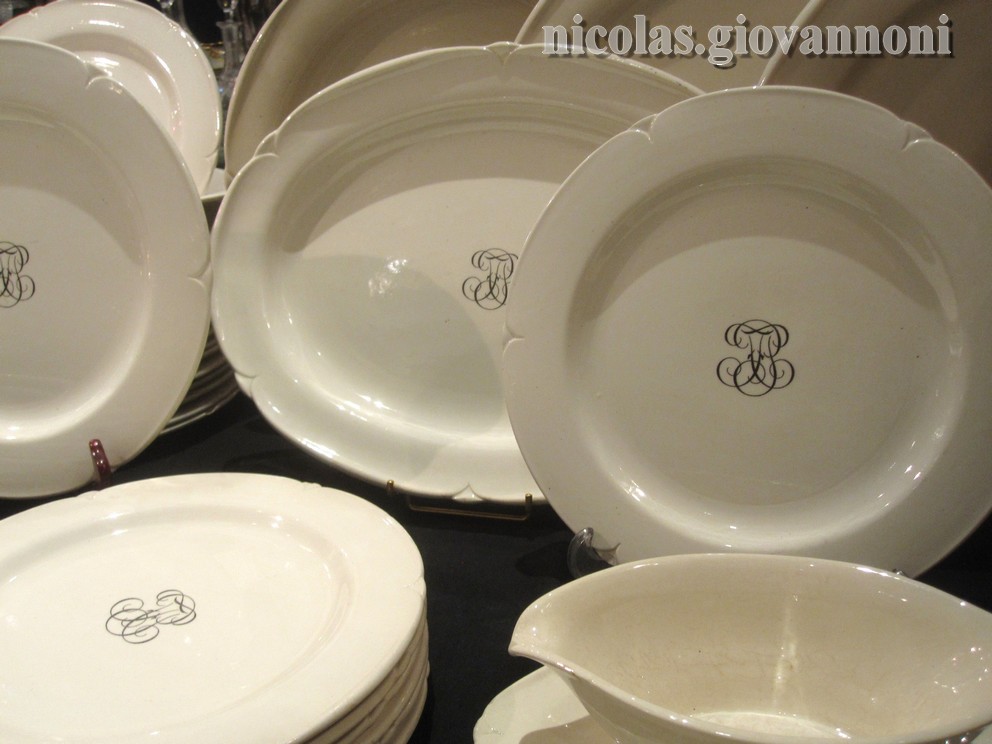 Très élégant service aux teintes ivoires, réhaussé d'un monogramme noir d'une belle ... |