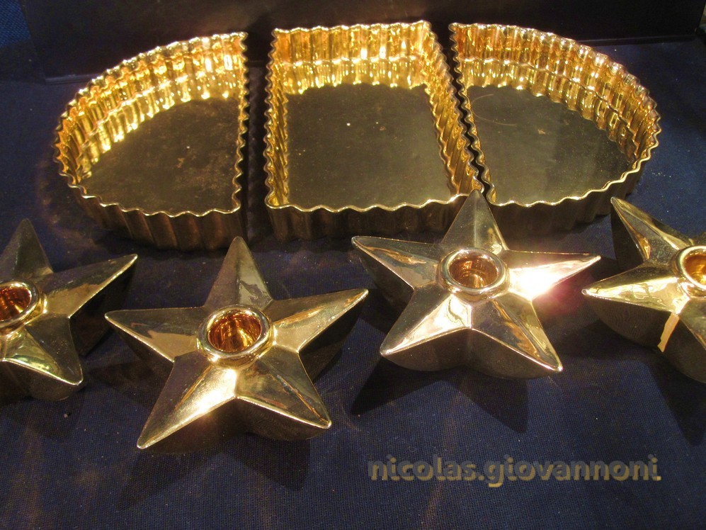 Elégant surtout de table composé de 3 récipients et 4 bougeoirs en forme d'étoile. Be ... |