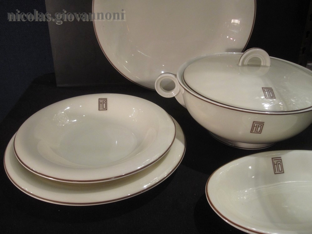 14 assiettes plates, 11 creuses, soupière, légumier, 4 raviers, 2 plats ovales, 3 ronds ... |