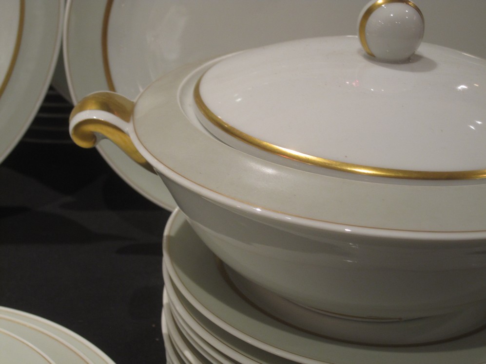 36 assiettes plates, 12 dessert, 12 entrées, 12 creuses,3 plats ronds, 2 ovales, 2 ravier ... |