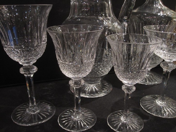 12 verres à eau, 12 à vin rouge, 11 à vin blanc, 11 flutes, 1 broc à eau, 1 carafe ... |