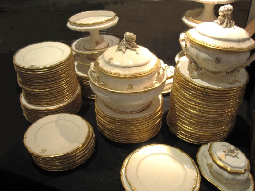 50 assiettes plates, 12 creuses, 30 dessert, 4 saucières, 3 plats ronds, 23 ovales, 1 cre ... |