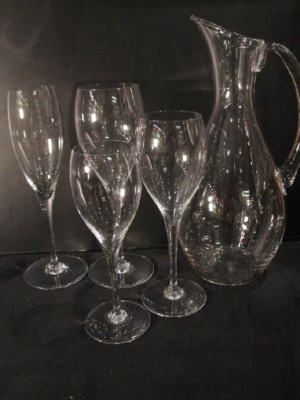 12 verres a eau, 11 Ã vin rouge, 8 Ã vin blanc, 10 flutes, 1 pichet. Vers 1960 ////// ... |