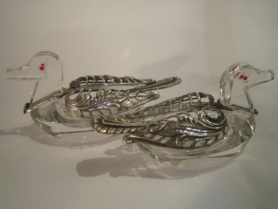 Charmante paire de petites salières en fome de canard.Les ailes en cristal s'entrouvrent ... |
