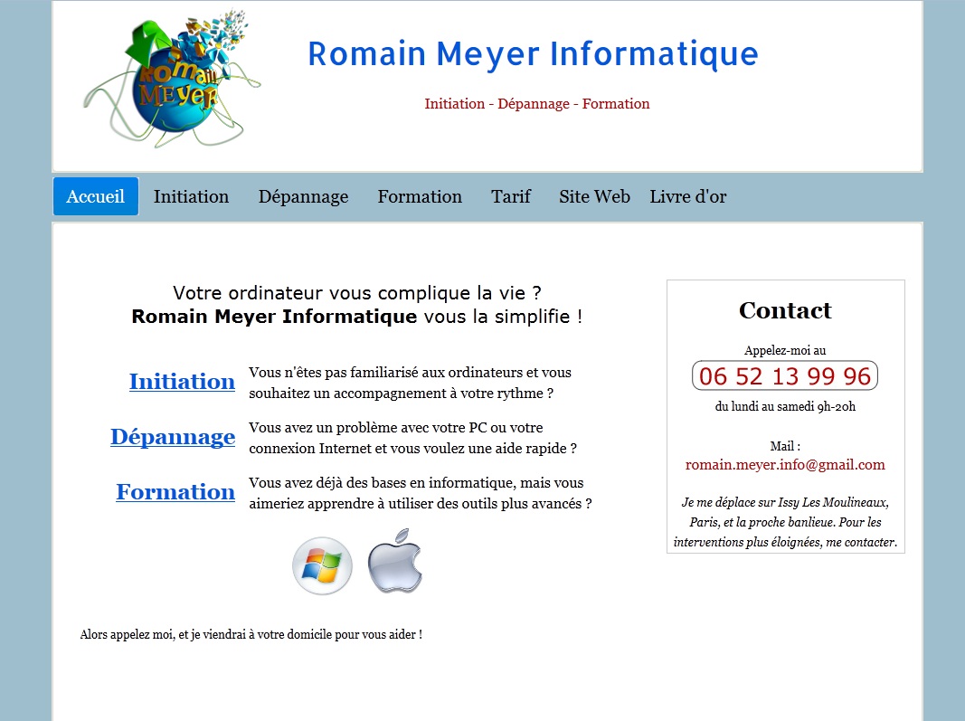 Romain Meyer Informatique Initiation - Dépannage - Formation en informatique (à domicile) |